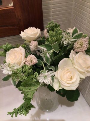 バラ、秋明菊、トルコキキョウ、ヒペリカム、ユーカリ